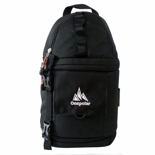 | A perfect combination of quick access and weather protection, this compact sling shoulder bag with 2 compartments. Fast-access front zipper pocket with inner organizer for cables, adaptors and small items. Removable padded Velcro camera dividers to protect camera gear. Front straps with buckles prevent zippers from completely opening while accessing camera. Extra cloth beneath zippers provides water resistance. Camera Compartment: 6.9" W x 4.5" D x 9.4" H. Approximate Pack:9" W x 7.1" D x 14.6" H inches. Reinforcement at all stress points. |